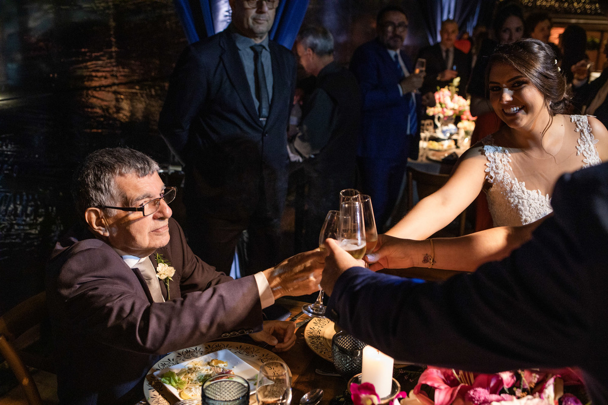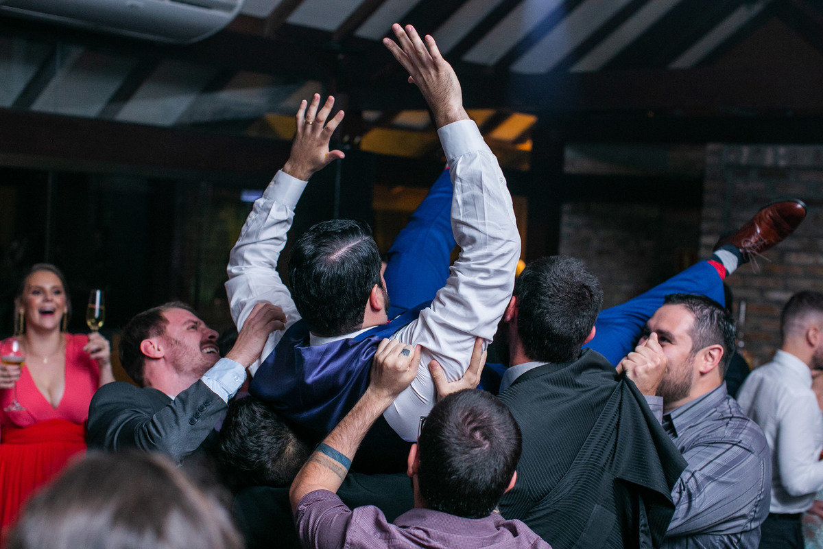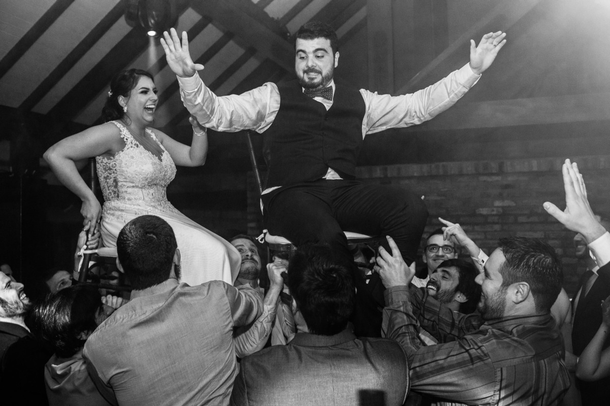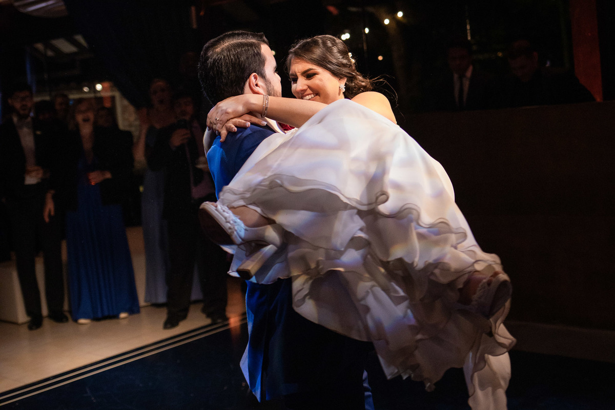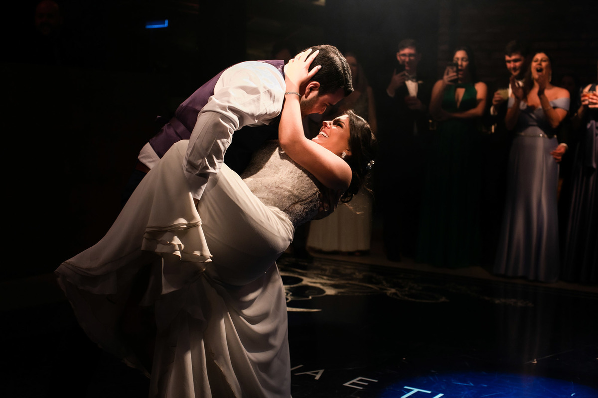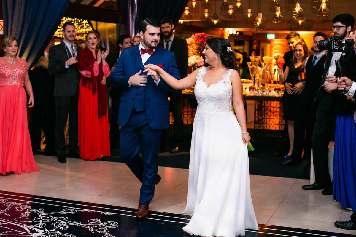 A festa foi super animada, que abriu com uma apresentação de dança dos noivos e depois a pista não parou mais.